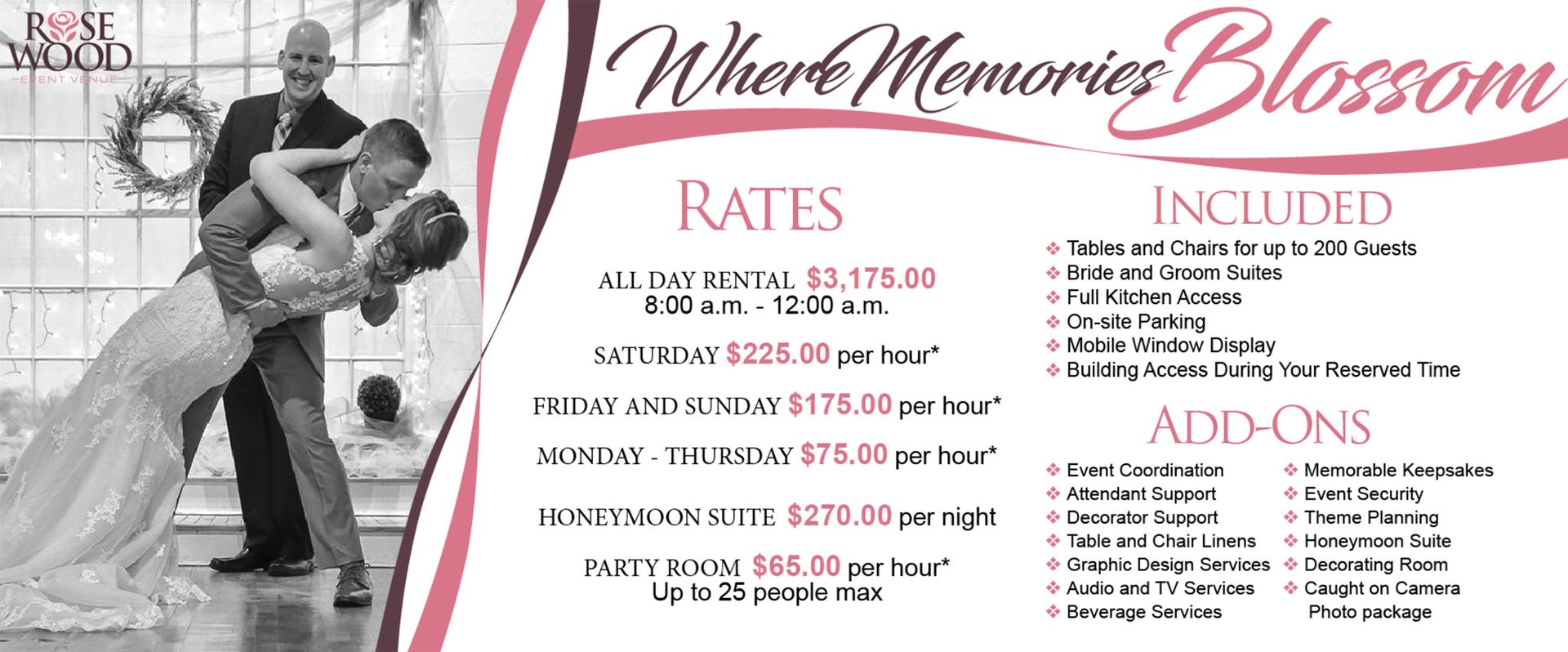 With assistance from our trained staff, we help your event run smooth leading up to your event with options for day of coordination services.